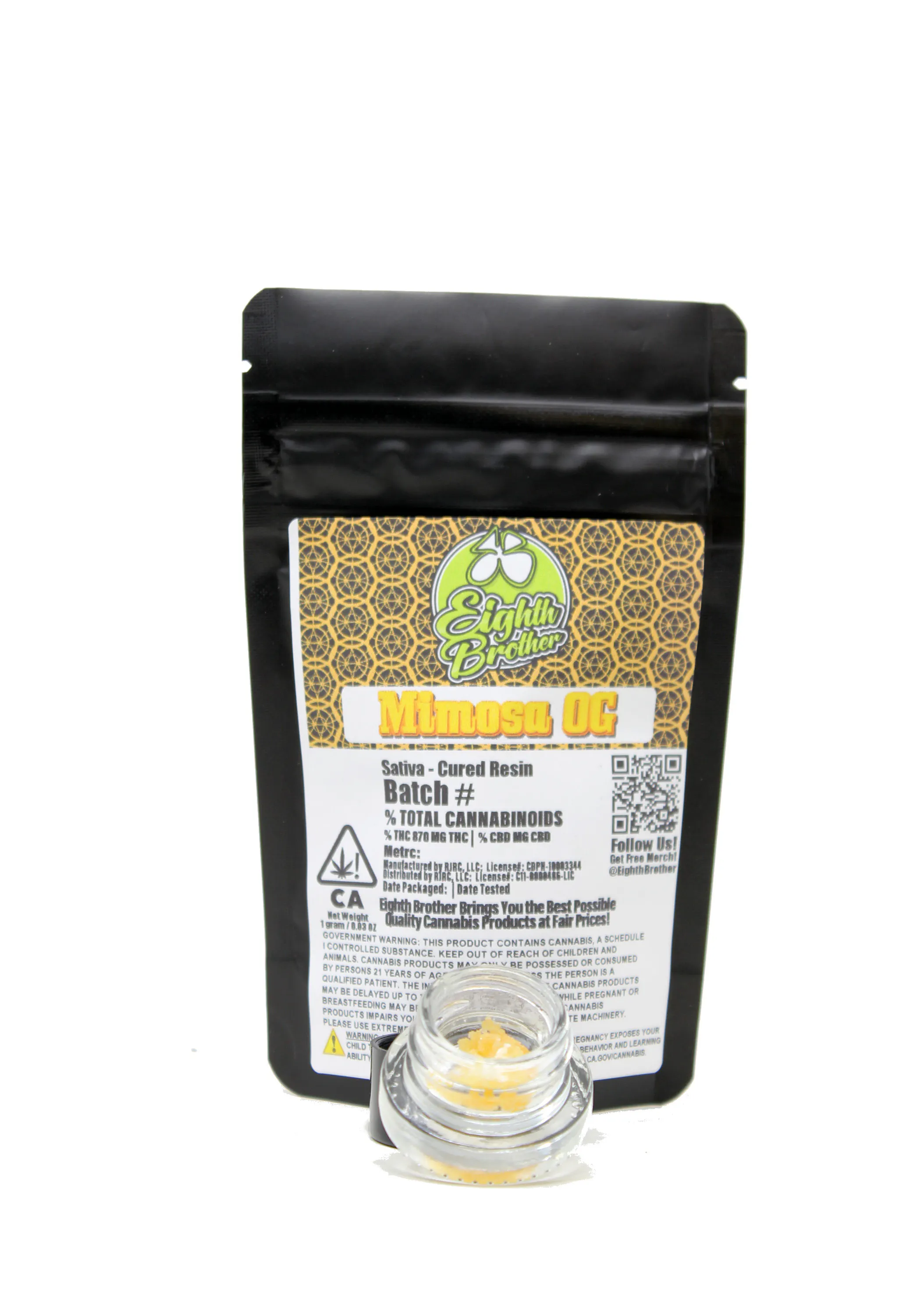 Introducing Eighth Brother's new Mimosa OG Crumble (1g), crafted with precision from cured resin for a potent and flavorful dabbing experience.
