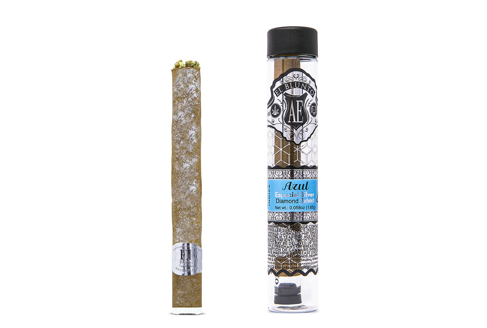 El Blunto Especial Silver is the perfect balance of quality and affordability. Our process is entirely hand-crafted. Contains 1.65g of full flower nugs, infused with THCa Diamonds (14.5% hash by volume), broken down by hand (never ground), hand rolled in tobacco-free all-natural hemp wraps, finished with custom glass filter tips, and encased in a re-sealable tube. www.elblunto.com  El Blunto is an Albert Einstone's Brand