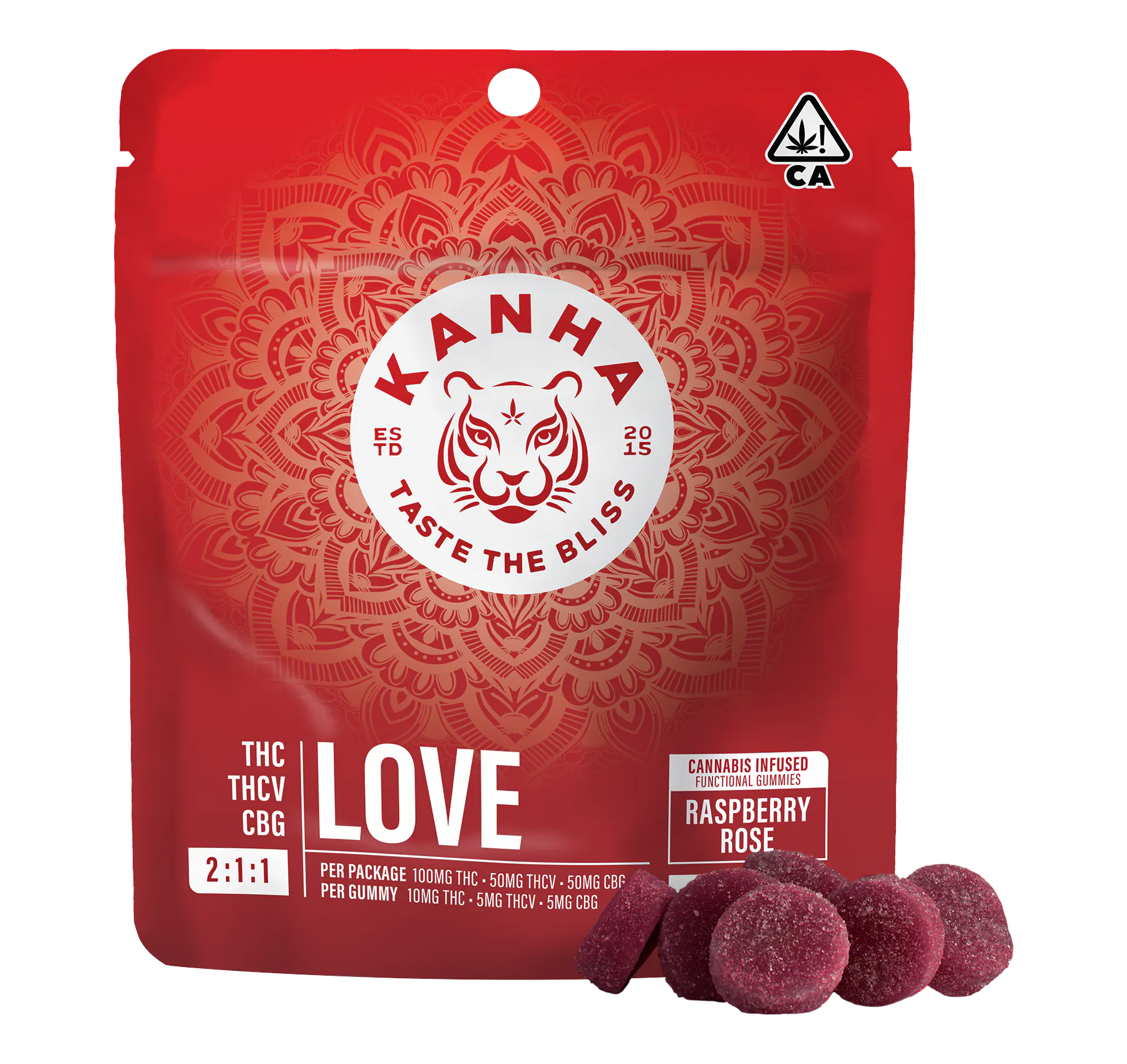 100mg THC x 50mg THCV x 50mg CBG per bag Our LOVE gummy combines the delicious flavors of Raspberry and Rose with a perfectly formulated 2:1:1 threesome of THC, CBG and THCV. Enhanced with Damiana extract which may improve blood flow and stamina, experience deep euphoria and amplified arousal in every bite. Instructions: Eat 1 gummy. Onset starts around 5-15 minutes. Wait 60 minutes for full effect. Keep in a cool, dry place. Avoid temperatures over 75°F. Ingredients: Tapioca Syrup, Cane Sugar, Water, Gelatin, Agar, Locust Bean Gum, Carnauba Wax, Citric Acid, Damiana Extract, Cannabis Oil, Natural Flavor, Green Tea Extract, Natural Fruit Concentrate, Natural Color, VESIsorb Nanotechnology, Natural Hybrid Terpenes