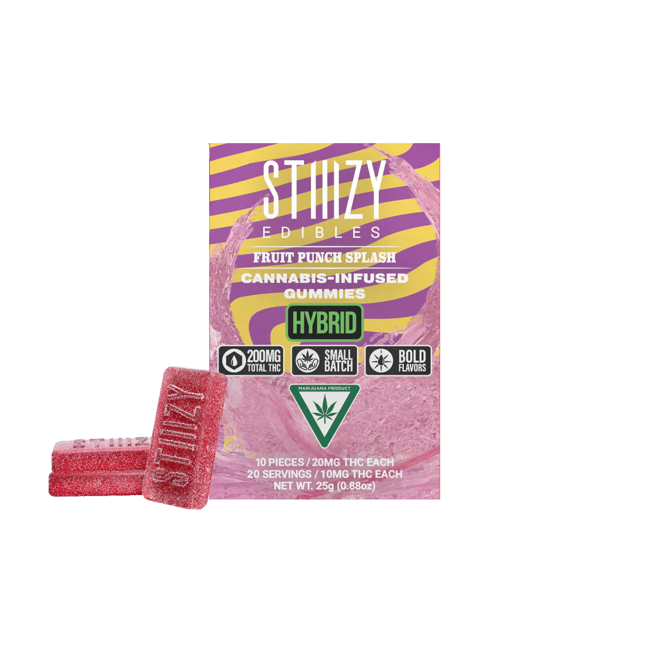 Introducing our new line of STIIIZY edibles. Your favorite live resin infused gummies are formulated with fast-acting nanotechnology in 20 mg pieces. Enjoy the blend of both delicious and mouth watering flavors in every bite.