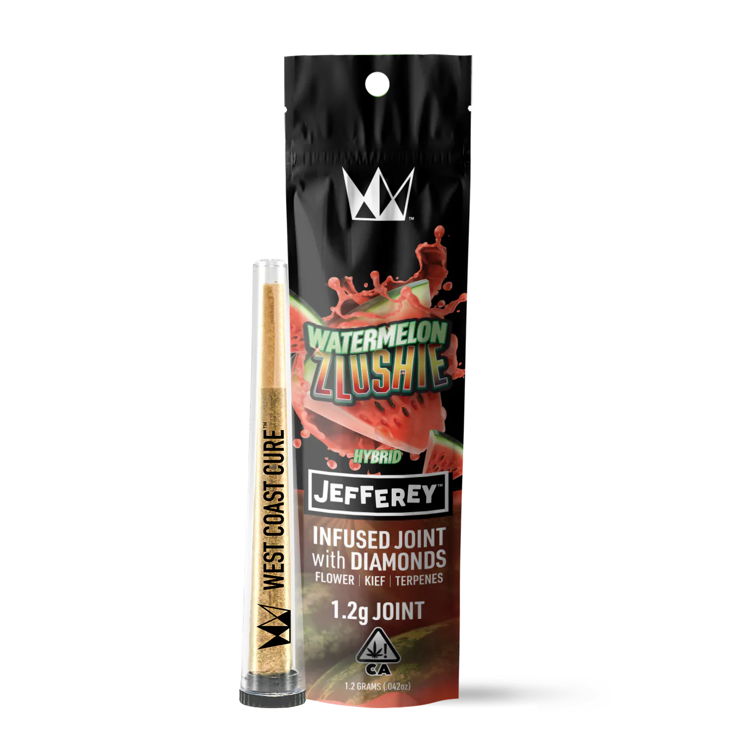 The Watermelon Zlushie Jefferey Single is a 1.2-gram powerhouse of a pre-roll, expertly crafted for those who crave quality. Rolled with WCC’s top-tier whole nug flower, this joint is supercharged with visible THCa diamonds, high-end kief, and subtly enhanced with all-natural terpenes. No trim, shake, or old flower here—just green, frosty goodness ground in-house in small batches for optimal freshness.